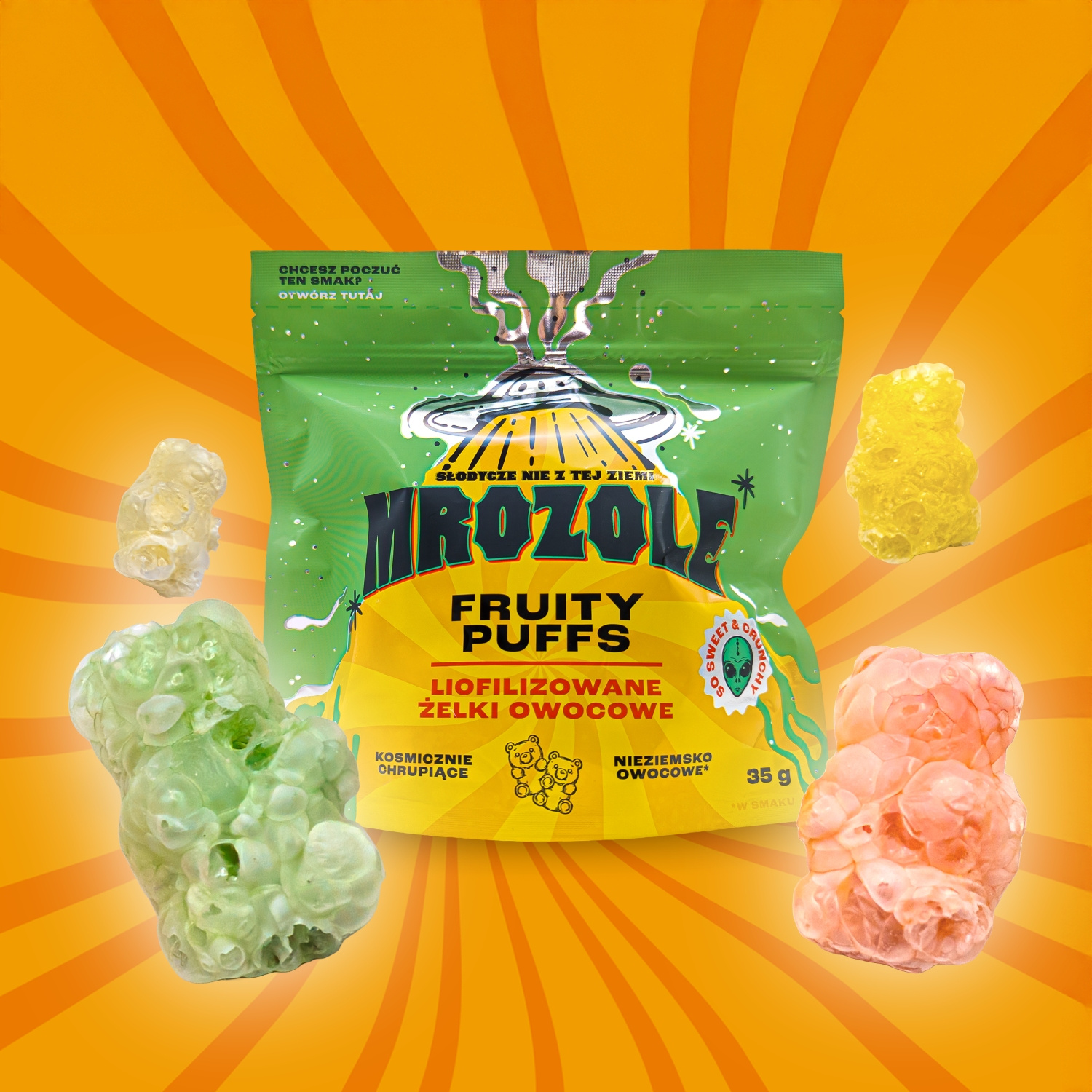 Nie czekaj! Zanurz się w owocowym świecie Mrozoli Fruity Puffs i poczuj, jak każdy miś chrupie w Twoich ustach!