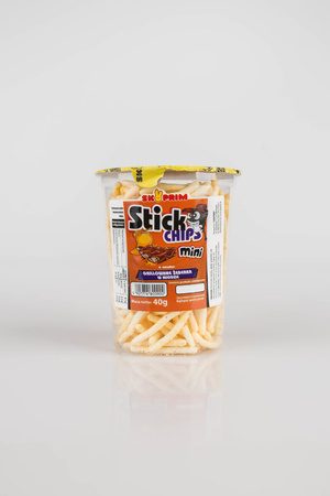 - Sticksy o smaku żeberka firmy Skoprim , opakowanie zawiera 12 szt. po 38g. skład: ziemniaki, sól, olej rzepakowy, czosnek w przyprawie, cukier, sól, wzmacniacz smaku E621, E635, E330, musztarda w proszku, hydrolizat białka roślinnego (zawiera soję)